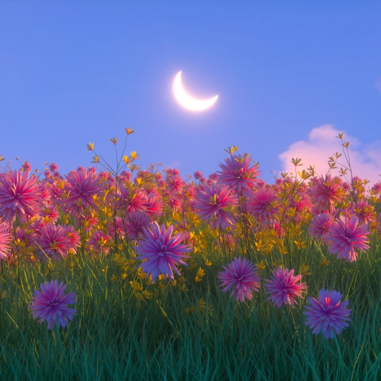 "Moonlit Meadow"은 달이 활짝 핀 꽃밭을 은은하게 비추는 평화로운 공간으로 여러분을 초대한다. 이 작품은 바쁜 일상 속에서 고요하고 아름다운 순간을 찾아 영혼을 위한 고요한 휴식을 선사한다. 부드러운 달빛과 화려한 꽃들이 조화로운 장면을 연출하여 숨을 고르고 사색하며 삶의 혼돈 속에서 평온을 찾도록 유도한다. 평화와 평온을 받아들이도록 부드럽게 상기시켜주는 역할을 한다.