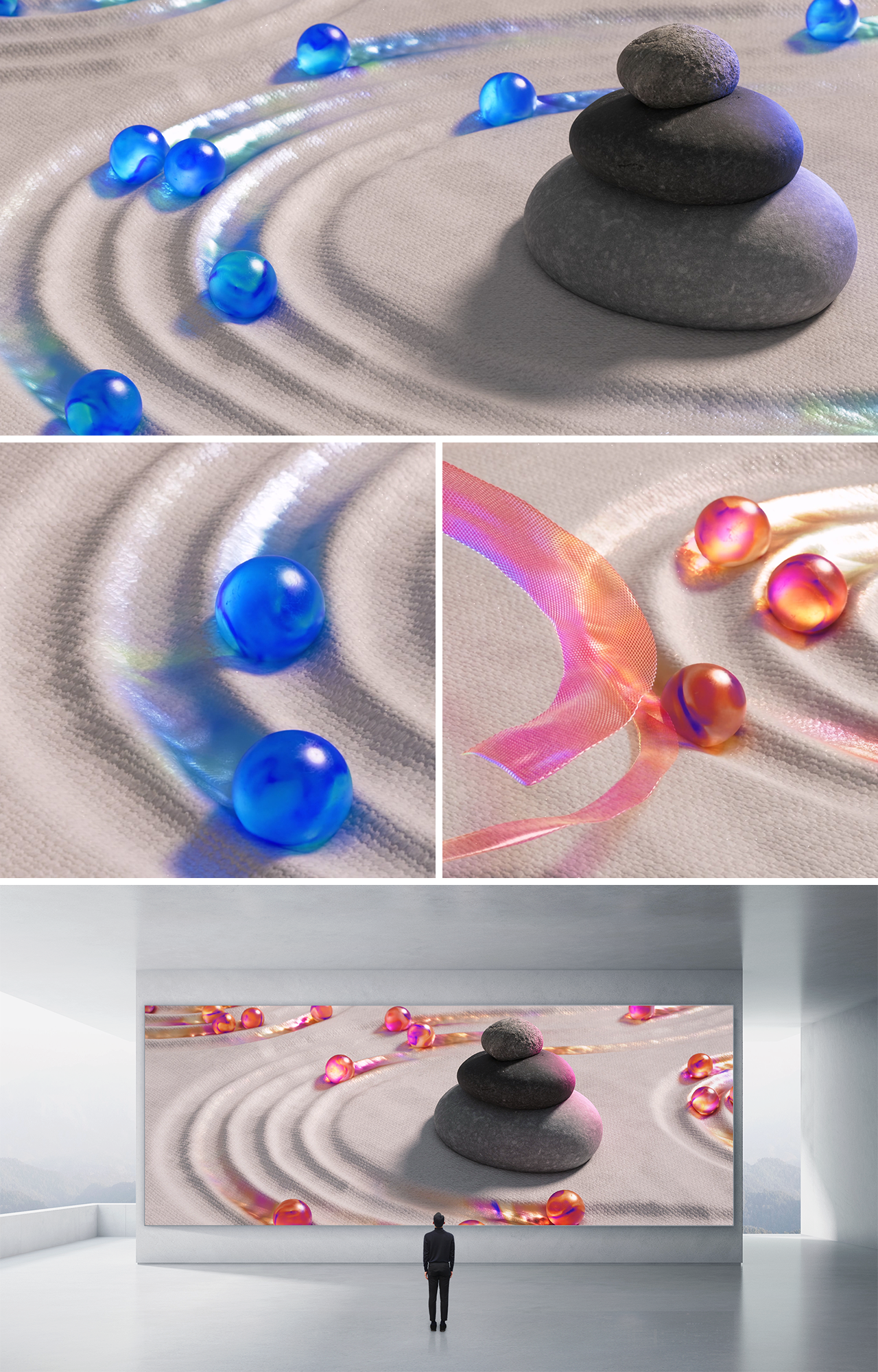 “Luck Rolling In”은 2024년 청룡의 해를 기념하여 제작된 아트워크입니다.이무기의 비늘을 은유적으로 형상화한 천 위로 수많은 행운의 여의주들이 구르며,찬란한 잔상이 공간 위에 펼쳐진다. 여의주의 유려한 흐름과 천의 잔상 효과는 관람객에게 감각적으로 즐거운 경험을 선사하며, 올해의 행운이 끊임없이 밀려온다는 긍정적인 메시지를 담아낸다.
