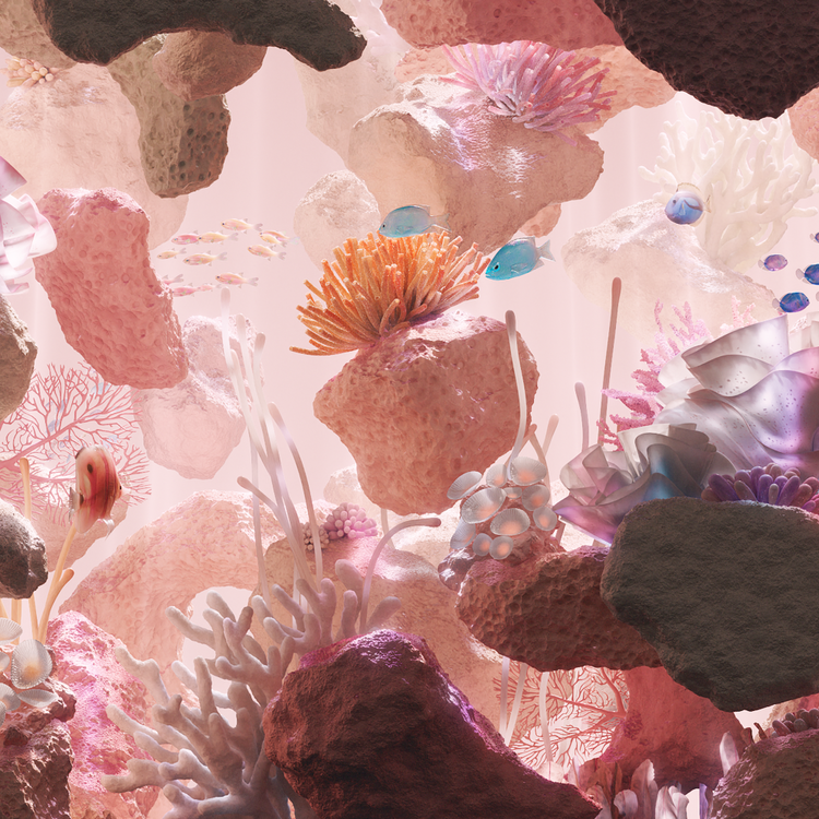 "Florium"은 수면 아래의 세계를 기반으로 구성된 스크린 속 작은 생태계로, 작품을 마주했을 때 현실의 흐름에서 벗어나 잠시 멈추고 머무를 수 있는 비주얼을 보여준다. 작품 속 요소들은 느린 속도로 떠다니며, 그 움직임은 시각적 자극이 아닌 감각의 완화를 지향한다. "Florium"은 재현이 아닌 경험의 공간이며, 부유하는 생명체들과 그 주변을 구성하는 형태들이 작품을 감상하는 사람들에게 잠시나마 평온을 안겨주는 매개체로 존재하길 바라는 마음을 담은 작품이다.