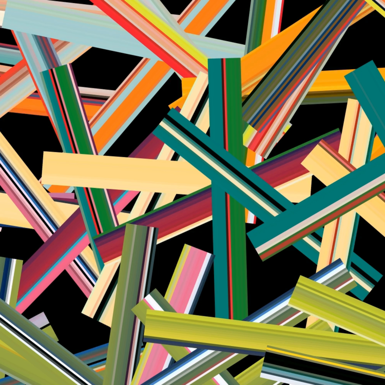 Colored Bars in Motion은 생생한 색상 스트라이프로 구성된 여러 개의 바(bar)가 각기 다른 방향으로 무작위 회전을 이어가는 제너러티브 작품입니다. 바들이 회전하며 서로 겹치고 교차하는 과정 속에서, 밀도 있으면서도 유동적인 리듬이 화면 위에 형성됩니다. 복잡하게 움직이고 있지만, 바들은 충돌하지 않습니다. 서로의 궤도에 겹치지 않고 움직이는 회전 속에서 질서와 조화가 공존하는 역동적인 장면을 만들어냅니다. 이 작품은 색, 형태, 공간이 맞물려 끊임없이 변화하는 시각적 흐름을 만들어내며, 그 안에서 긴장과 균형이 미묘하게 공존하는 감각을 전합니다.
