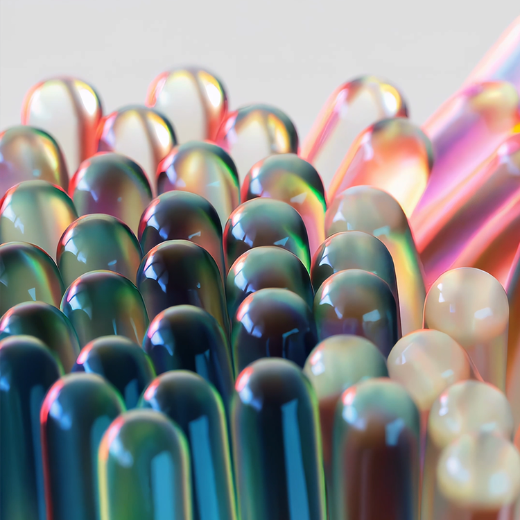 빛과 형태의 부드러운 파동이 캔버스 위를 유영하며 서로 자연스럽게 어우러집니다. 이 유기적인 움직임은 마치 하나의 흐름처럼 이어지며, 화면 위에 생동감 넘치는 결을 만들어냅니다. 각각의 형태가 하나로 합쳐지며,에메랄드, 자수정, 샤프란의 색채가 반쩍이며 오로라처럼 타오르고, 그 안에서 찬란한 빛의 아름다움이 드러납니다. 작품은 끊임없이 변화하는 색조의 리듬을 따라 가며 우주적 조수처럼 부드럽고 역동적으로 흘러갑니다. 이 움직임이 관람자를 색과 빛이 어우러진 눈부신 시각의 교향곡 속으로 이끕니다.