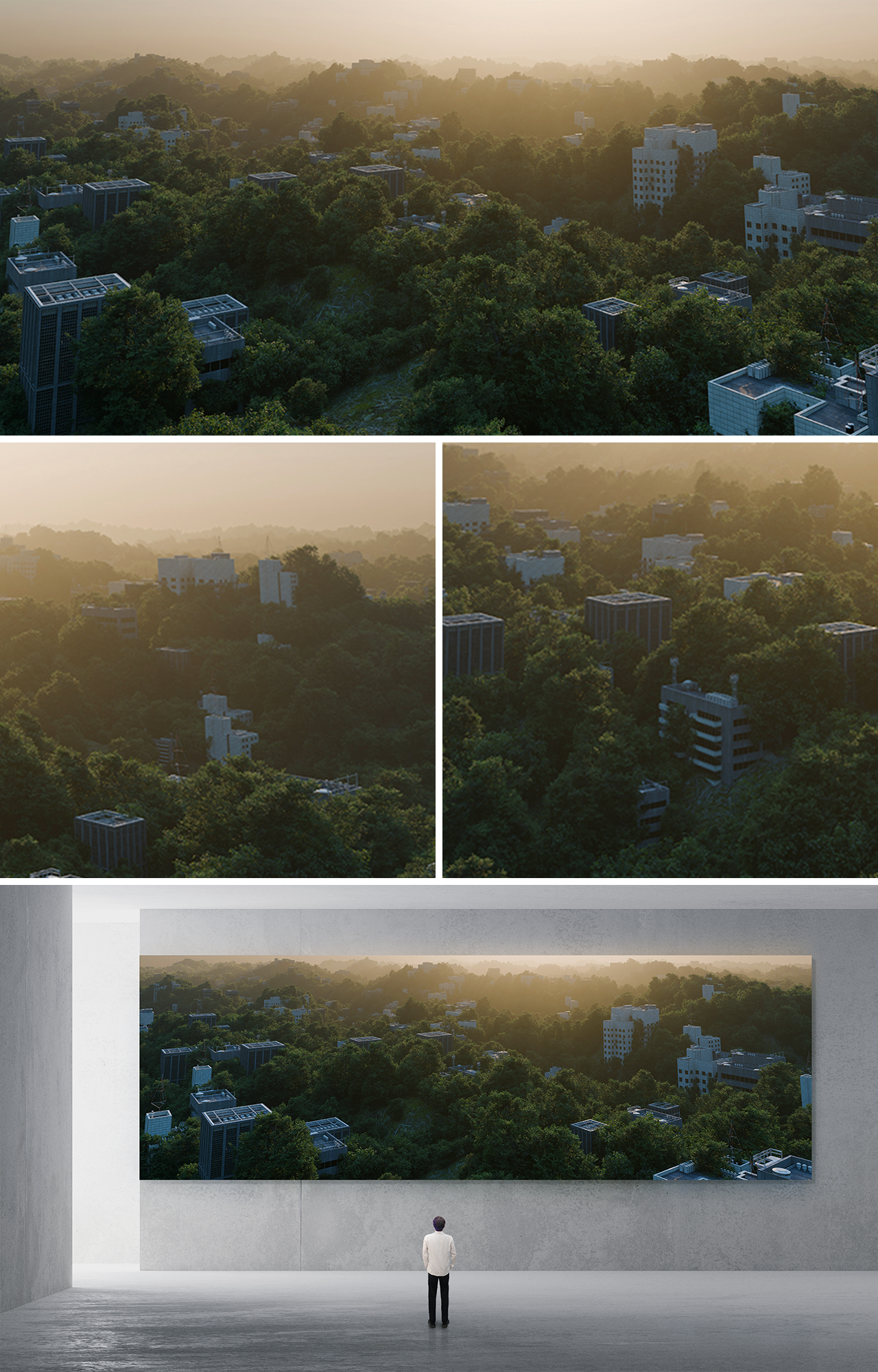 ONYRO WAVES #3 는 유기적이고 유동적인 형태들이 건축적 구조와 매끄럽게 얽히며 매혹적인 움직임의 리듬을 만들어내는 디지털 애니메이션입니다. 나무는 솟아오르고 사라지며, 건물들은 떠오르고 희미해지기를 반복하며 자연과 도시 구조 사이의 끊임없는 대화를 형성합니다. 은은한 그라데이션과 섬세한 빛의 변화는 깊이감을 더하고, 부드러운 질감은 각 움직임에 촉각적이고 살아 있는 듯한 생명력을 부여합니다. 곡선적이고 유기적인 선들과 인공 구조의 수직성이 맞물리며 꿈결 같고 몰입적인 환경을 만들어내며, 관객을 자연의 성장과 인공적 구조물이 유동적인 조화 속에 공존하는 평온하고 최면적인 공간으로 초대합니다. 이 작품은 색채, 움직임, 형태가 완전한 디지털 풍경 속에서 어떻게 어우러지는지를 보여줍니다.