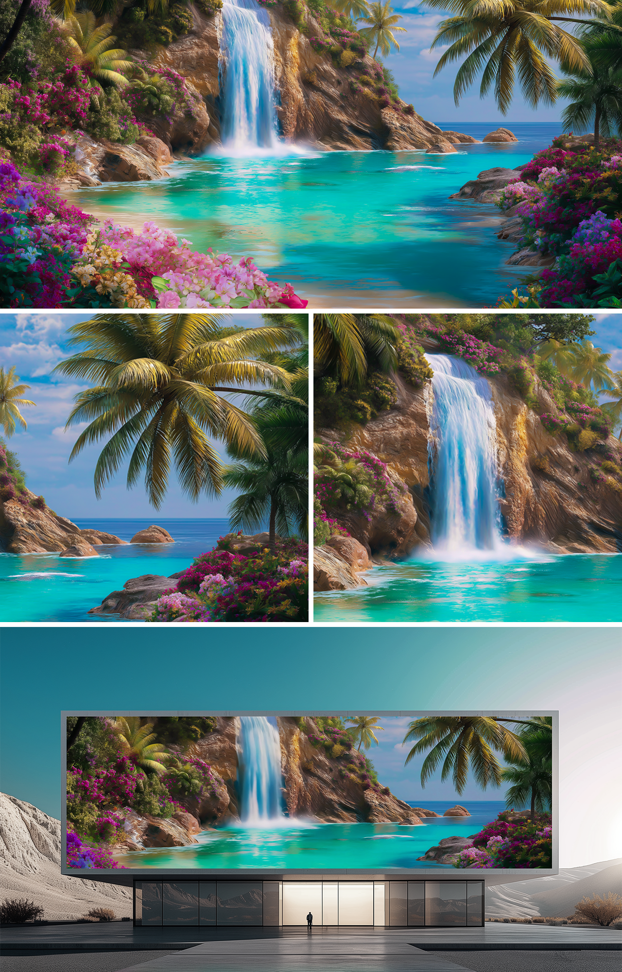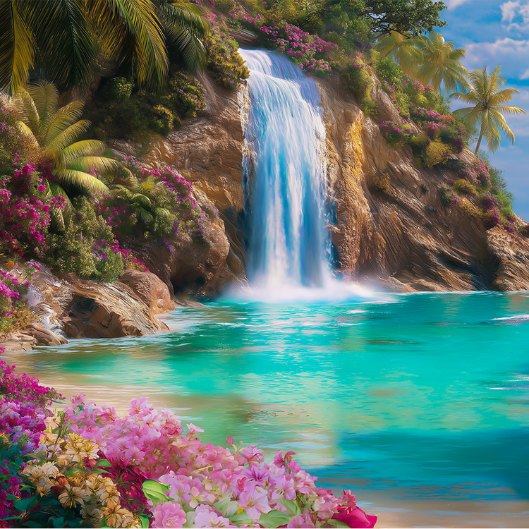 숨 막히는 해변에는 수정처럼 맑은 청록색 바다로 쏟아지는 풍부한 폭포가 있으며, 온갖 색상의 생생한 열대 꽃들로 둘러싸여 있다. Lemurian의 기운이 평화와 조화, 신성한 여성적 에너지로 공기를 가득 채운다. 폭포의 부드러운 포효는 바다의 속삭임과 어우러져 영혼을 깨우는 교향곡을 만들어낸다. 모든 꽃이 빛을 발하며 마치 자연 그 자체가 축복을 내리듯, 평온과 영원한 낙원의 품에 안기도록 당신을 초대한다.
