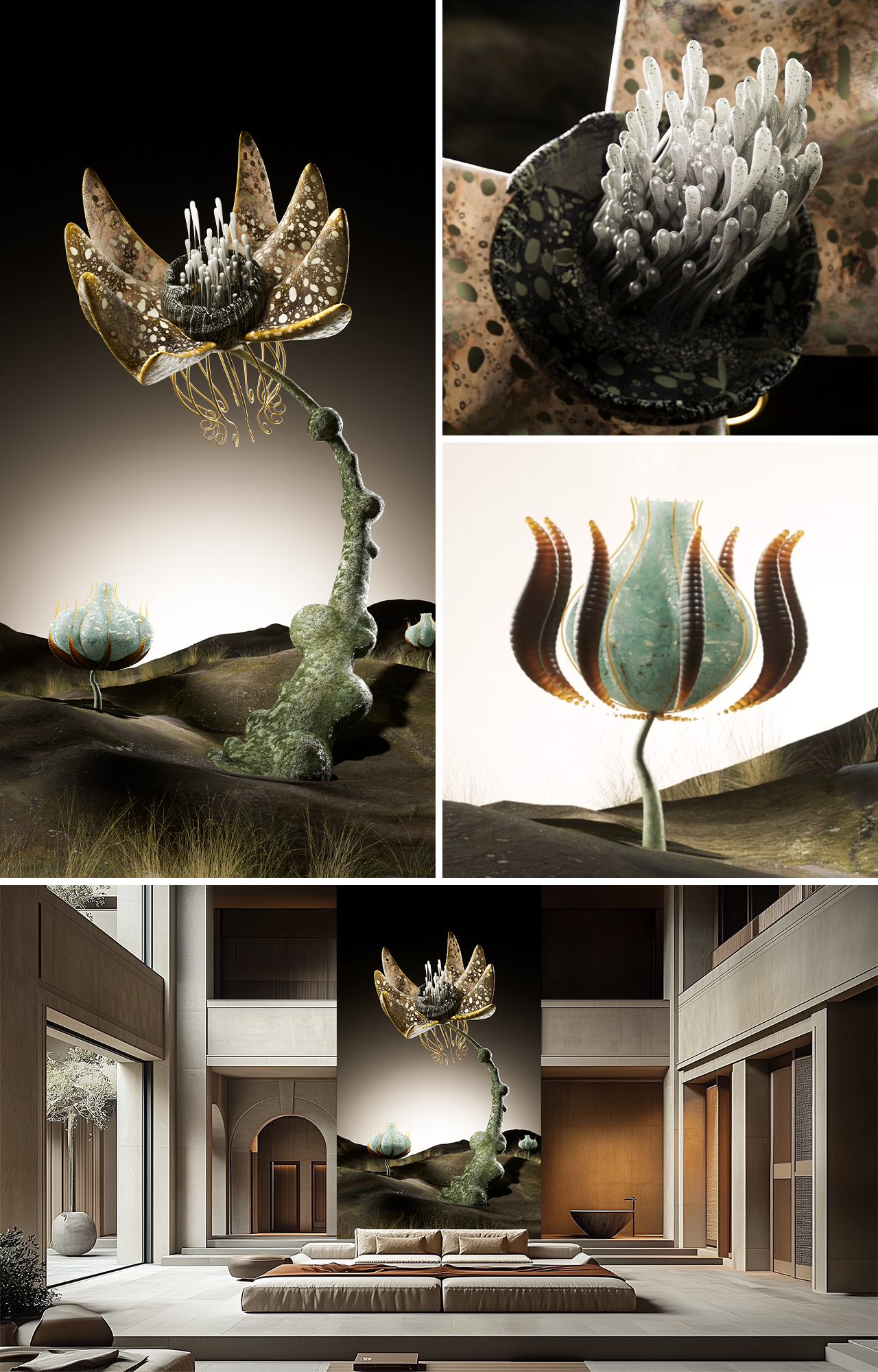 'Virtual Nature Study'는 인간 중심적 시각을 넘어, 자연이 스스로 진화하는 가상 생태를 탐구하는 실험적 프로젝트입니다. 이 작품은 생명체, 기술, 그리고 환경이 서로 평등하고 공생적인 관계를 이루는 세상을 그리며, 디지털 전환을 통해 인간과 자연이 교차하는 새로운 지점을 제시합니다. 이를 통해 인간의 활동과 자연 생태계가 조화롭게 어우러질 수 있도록, 자연에 대한 깊은 정서적 공명을 일깨우는 것을 목표로 합니다. 궁극적으로 본 작품은 종(種)의 경계를 넘어선 지속 가능한 공생의 미래를 상상하고 그려냅니다. 작품의 배경은 봄과 여름으로, 자연 속에 우리의 존재가 스며드는 듯한 시적 분위기 속에서 이야기가 전개됩니다. 햇살의 따스함을 느끼고, 바람의 속삭임을 듣고, 한숨 사이로 변화하는 자연의 결을 감지하며, 현실과 비현실이 맞닿는 ‘진짜 같은 비현실(Authentic Unreality)’의 세계로 우리를 초대합니다.
