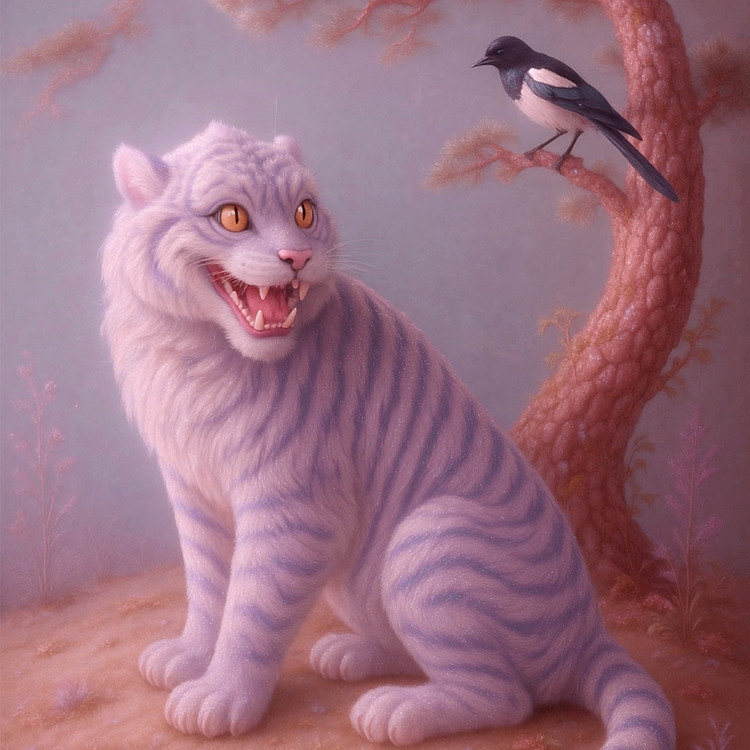 ‘까치호랑이(作虎圖)’는 조선시대 민화의 대표적인 소재로, 권위를 풍자하고 행복과 길상을 상징하는 그림이다. 이 작품은 전통 민화의 해학적인 감성을 현대적 미디어아트 언어로 재해석한 것으로, 장난스럽고도 따뜻한 시선으로 세상을 바라보는 호랑이와 까치의 모습을 입체적이고 몽환적인 영상으로 구현했다. 유쾌함과 긴장감이 공존하는 이 장면은, 전통 속 유머와 생명력이 오늘의 감각으로 다시 피어나는 순간을 담고 있다.