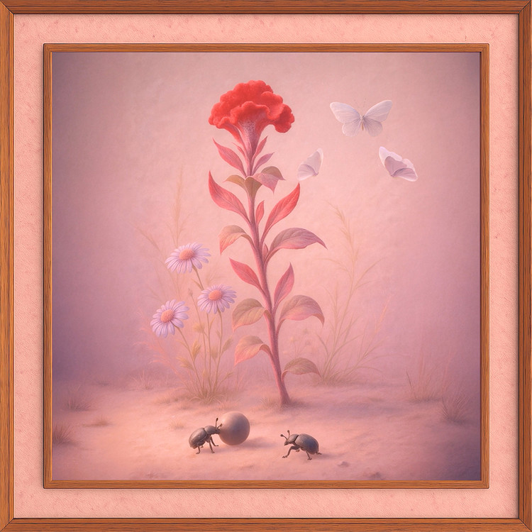 ‘초충도 草蟲圖 No.6’는 풀과 벌레의 세계를 통해 자연의 미세한 생명과 조화를 섬세하게 포착한 작품이다. 이 작품은 신사임당의 8폭 병풍에 담긴 정신을 이어받았다. 바람에 흔들리는 꽃과 리듬감 있게 움직이는 곤충들의 모습 속에서 자연의 순환과 생명의 고요한 리듬이 빛으로 되살아난다. 디지털 화면 위에서 전통의 감성이 새로운 생명력을 얻으며, 시간과 공간을 초월한 조화의 미학을 전한다.