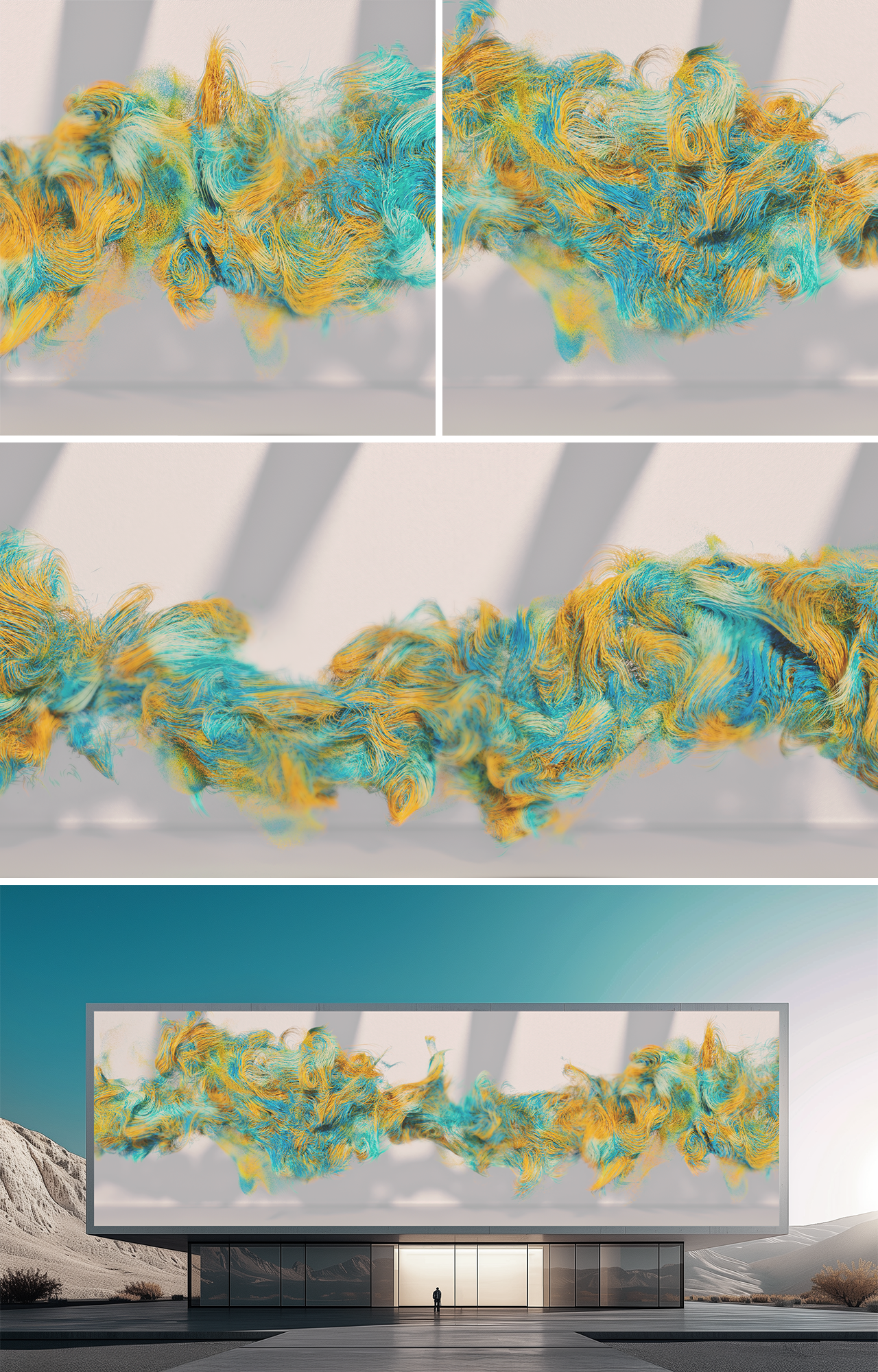 수많은 가느다란 실들이 얽히고 설키며 생성과 소멸을 반복한다. 빛의 흐름 속에서 해체와 재구성을 거듭하는 움직임은 시간의 고요함과 필연을 품고, 모든 순간을 이어주는 찬란한 리듬으로 관객을 명상의 흐름 속으로 이끈다.
