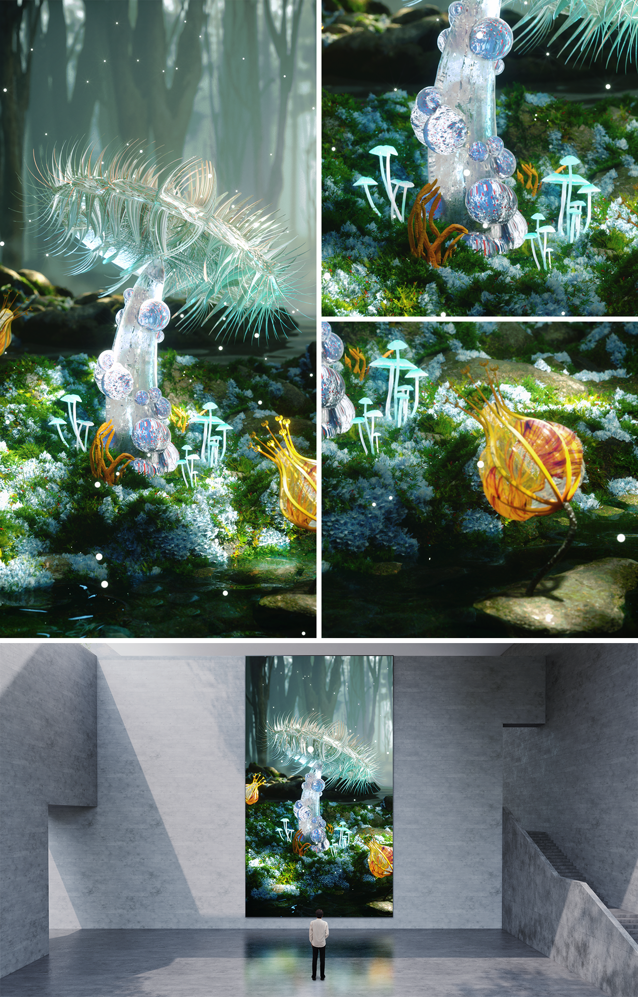'Virtual Nature Study'는 인간 중심적 시각을 넘어, 자연이 스스로 진화하는 가상 생태를 탐구하는 실험적 프로젝트입니다. 이 작품은 생명체, 기술, 그리고 환경이 서로 평등하고 공생적인 관계를 이루는 세상을 그리며, 디지털 전환을 통해 인간과 자연이 교차하는 새로운 지점을 제시합니다. 이를 통해 인간의 활동과 자연 생태계가 조화롭게 어우러질 수 있도록, 자연에 대한 깊은 정서적 공명을 일깨우는 것을 목표로 합니다. 궁극적으로 본 작품은 종(種)의 경계를 넘어선 지속 가능한 공생의 미래를 상상하고 그려냅니다. 작품의 배경은 봄과 여름으로, 자연 속에 우리의 존재가 스며드는 듯한 시적 분위기 속에서 이야기가 전개됩니다. 햇살의 따스함을 느끼고, 바람의 속삭임을 듣고, 한숨 사이로 변화하는 자연의 결을 감지하며, 현실과 비현실이 맞닿는 ‘진짜 같은 비현실(Authentic Unreality)’의 세계로 우리를 초대합니다.