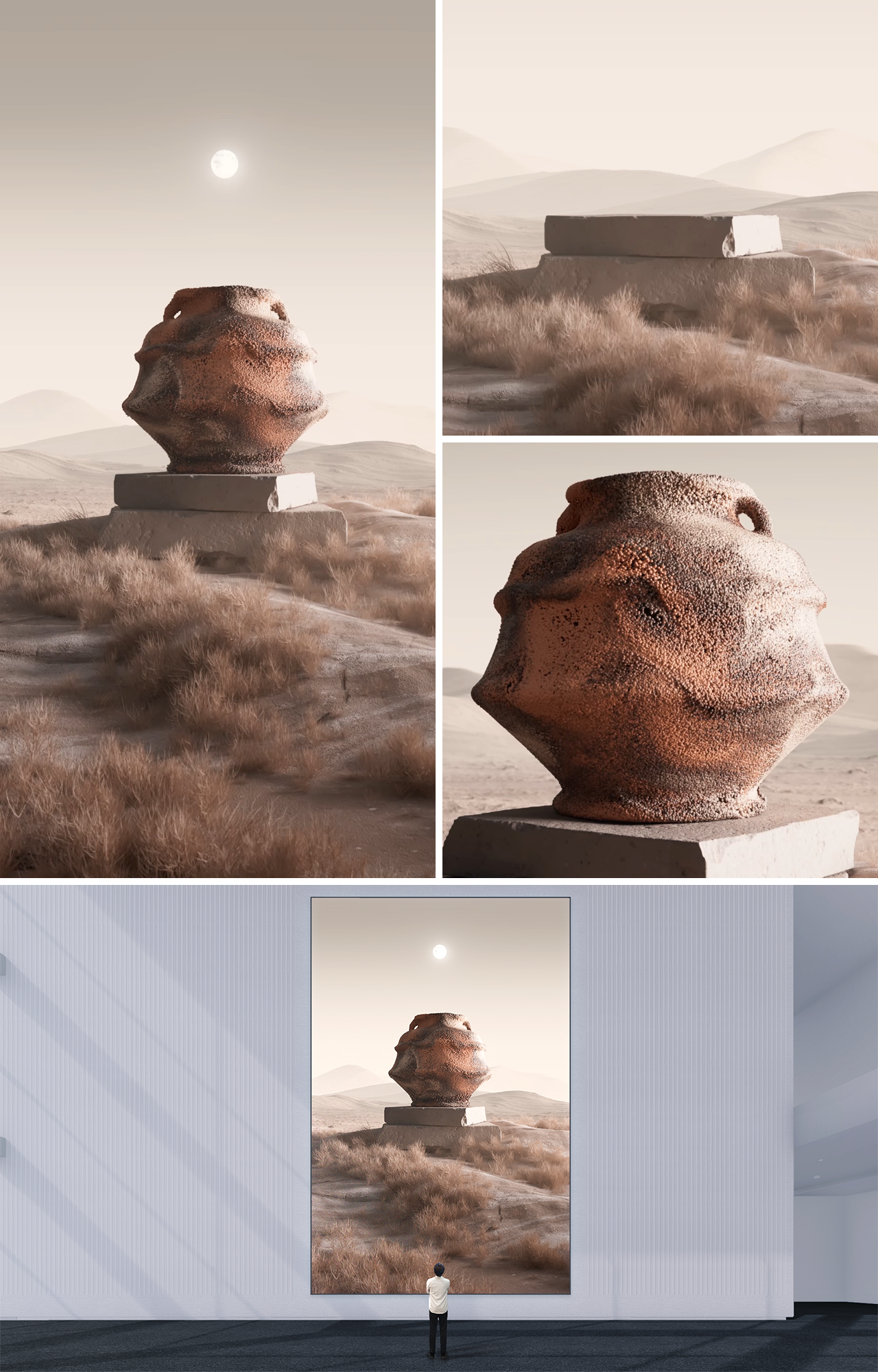 디지털 기술과 문화적 기억을 결합한 'Neorelic'은 고대 페르시아의 항아리를 과거와 미래 사이에 떠 있는 시대를 초월한 그릇으로 재해석한다. 한때 신성한 의미를 지녔던 이 형상들은 이제 빛과 코드 속에서 새롭게 탄생하며, 동시대의 미학과 기술을 통해 정제된 모습으로 다시 제시된다. 각 오브제는 시간을 넘나드는 포털처럼 기능한다. 이는 유산과 변화, 그리고 형태 언어가 끊임없이 진화해온 과정에 대한 조형적 사유이자, 전통이 현대적 표현 속에서 어떻게 재구성될 수 있는지를 탐구하는 작품이다.