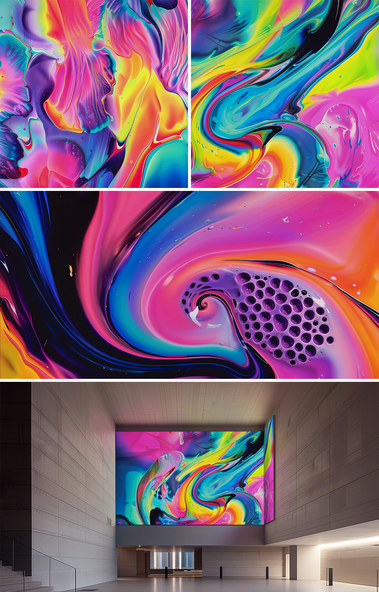 PLASMA 시리즈는 리퀴드 잉크 페인팅을 밝고 네온 파스텔 컬러로 빛나는 애니메이션 작품으로 변환한다. 사진과 생성적 실험을 통해 색소들은 유동적인 움직임으로 점화되며, 찬란하게 변화하는 몽환적인 풍경처럼 펼쳐진다. 빛나는 색조가 소용돌이치고 서로 섞이며 확장되어, 우주적이면서도 회화적인 에테리얼한 질감을 드러낸다. 각 작품은 움직임과 빛, 그리고 분위기를 채우는 색채를 통해 생명을 얻은 선명하고 살아 있는 회화로 완성된다.