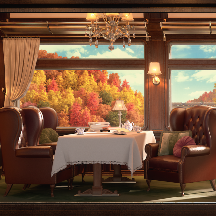 차창 너머로 흐르는 계절의 변주를 따라, 어느새 서정적인 가을의 한복판에 다다릅니다. 오리엔트 특급열차를 연상시키는 고전적인 기차 객실 창밖으로 울긋불긋하게 물든 가을의 파노라마가 펼쳐집니다. 단풍이 짙게 깔린 도시의 풍경을 뒤로하고 기차가 드넓은 대자연을 향해 나아갈수록, 열차 내부로 스며드는 빛의 일렁임과 미세한 진동은 마치 실제 여행의 길목에 서 있는 듯한 몰입감을 선사합니다. 흐르는 풍경과 조응하는 빛의 변주 속에서 관객은 비로소 온전한 가을의 승객이 되어 계절의 정취를 만끽합니다.